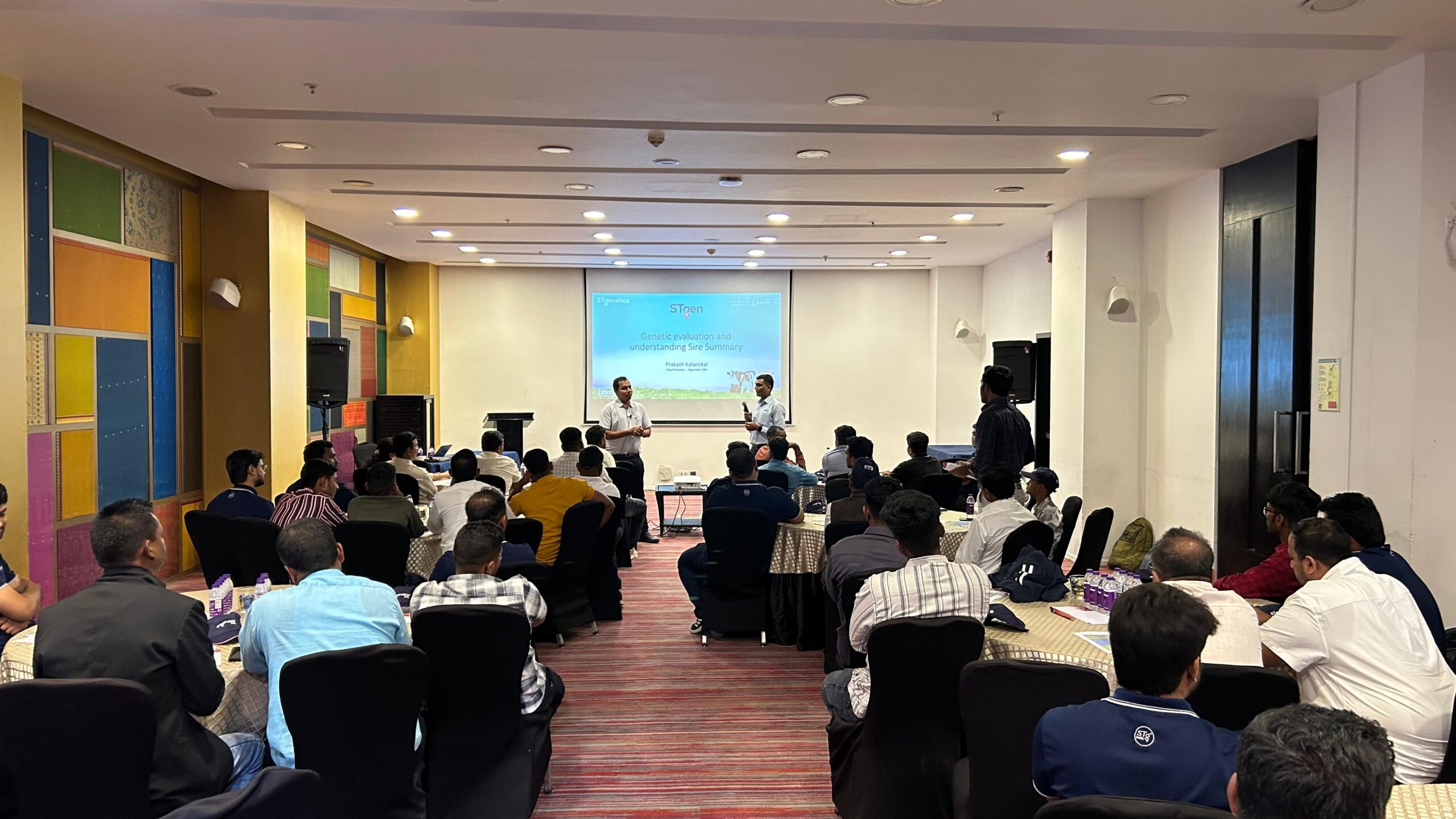 During the interaction with progressive dairy farmers owning six or more Holstein Friesian and Jersey animals, ST’s sex-sorted semen technology and available imported semen were explained, Dr. Prakash Kalarickal highlighted the importance of genomic testing for sustainable dairy farming, detailed key genomic terminologies and Genetic Vision test offerings, and farmers expressed great enthusiasm about genomic testing now being available in India.