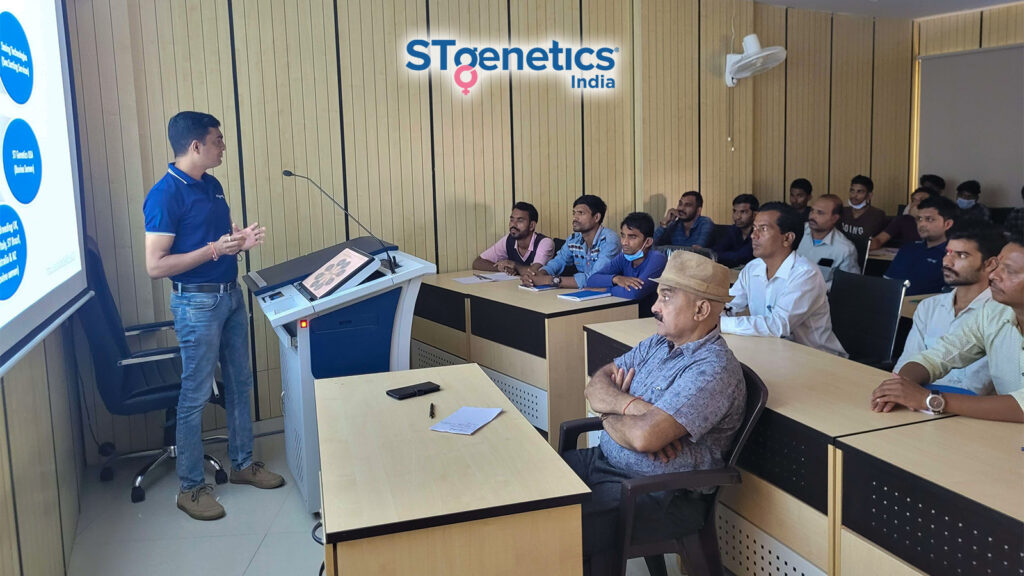 STgenetics India is engaged in conducting field training for AI technicians and dairy farmers to create awareness about benefits of sex sorted semen, importance of semen handling, proper AI techniques etc. This helps to increase conception rate and hence maximum utilization of sex sorted semen.